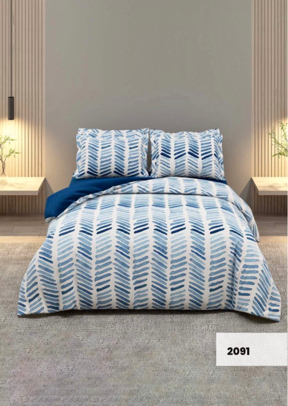 ملحفه کشدار(200*160 یا 180*200) 2 عدد روبالش طرحدار(50*70) 2 عدد روبالش ساده (50*70)